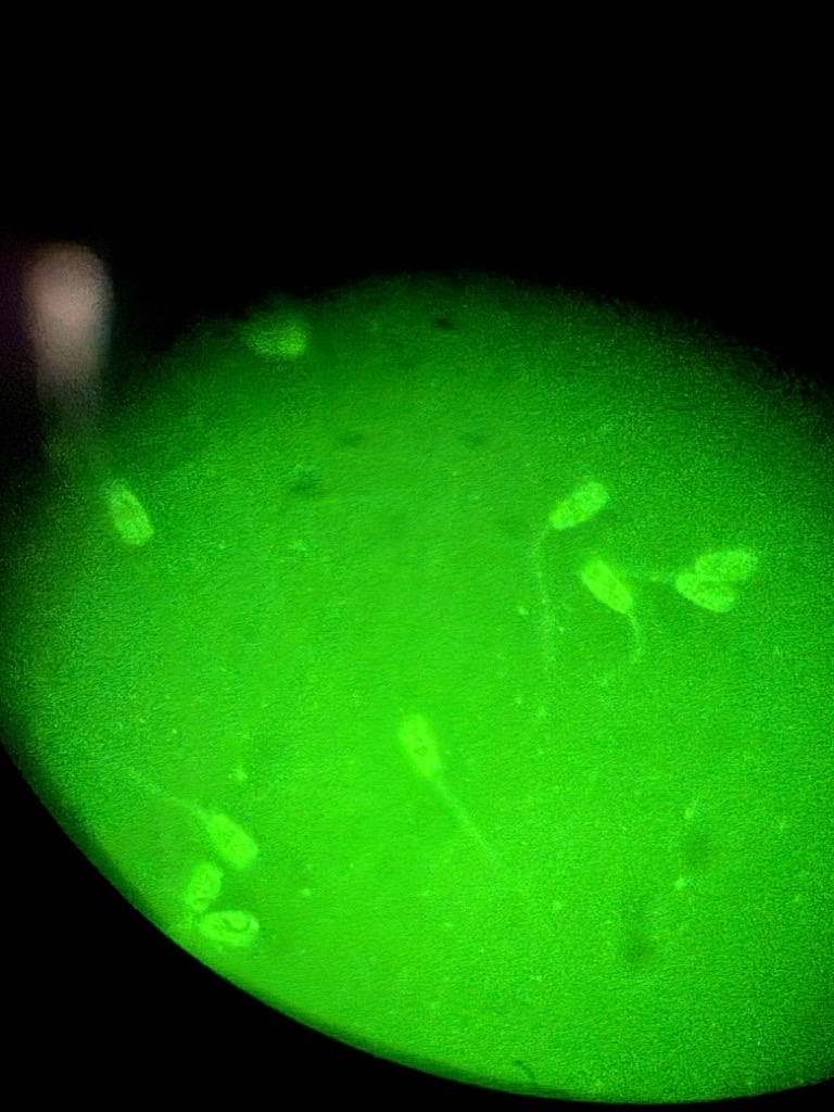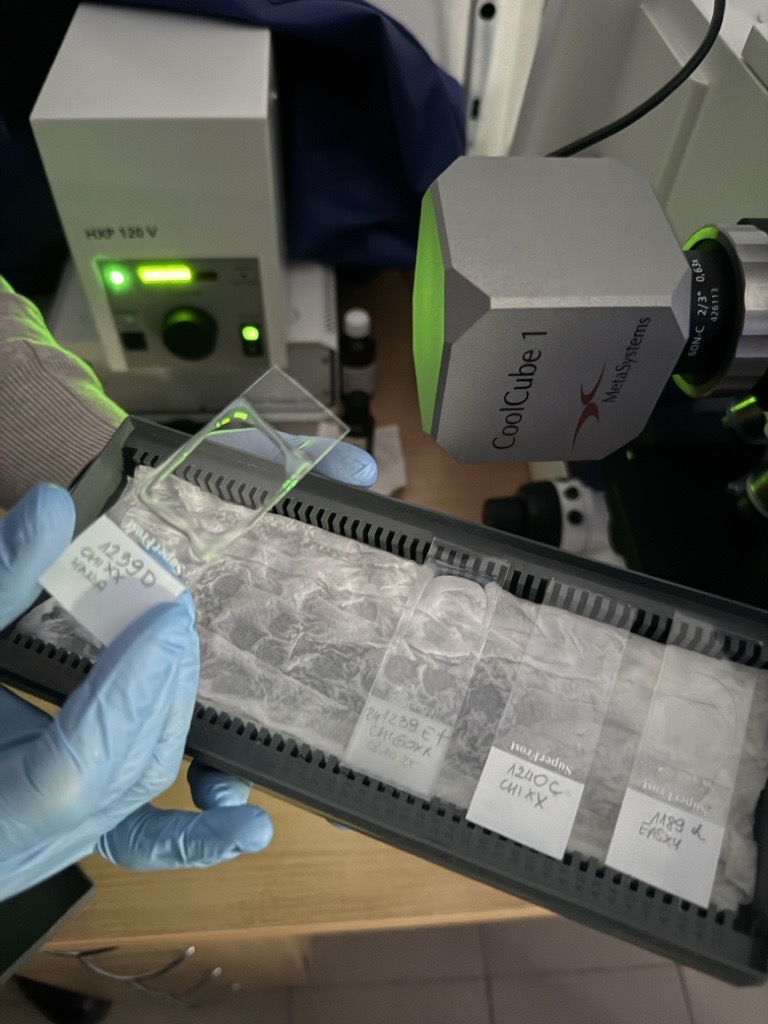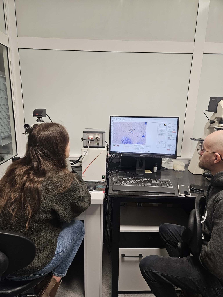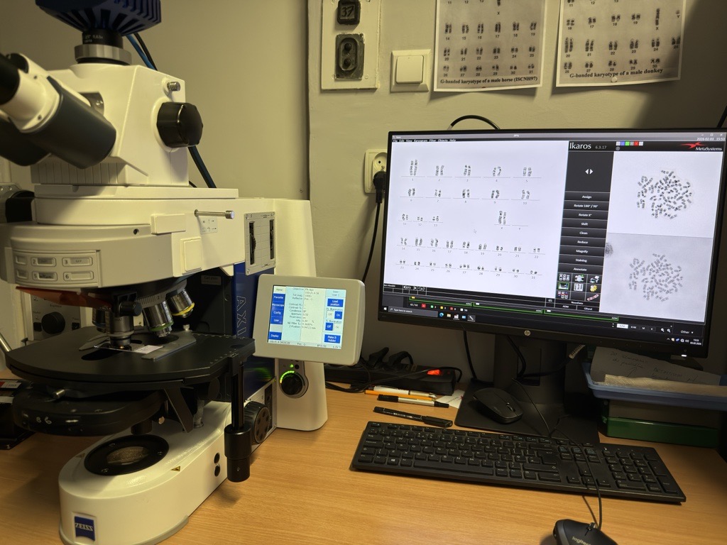 W trakcie stażu rozwinęliśmy również umiejętności w zakresie mikrodysekcji laserowej chromosomów u różnych gatunków zwierząt z zastosowaniem mikrodysektora Leica LMDS, co umożliwiło precyzyjną izolację wybranych fragmentów materiału genetycznego do dalszych analiz. Nabyliśmy także kompetencje w zakresie kariotypowania z wykorzystaniem oprogramowania IKAROS (MetaSystems), jak również praktyczne doświadczenie w ocenie jakości nasienia przy użyciu komputerowego systemu analizy CASA SCA oraz w pracy z systemem ciągłego monitorowania rozwoju zarodków TimeLapse.