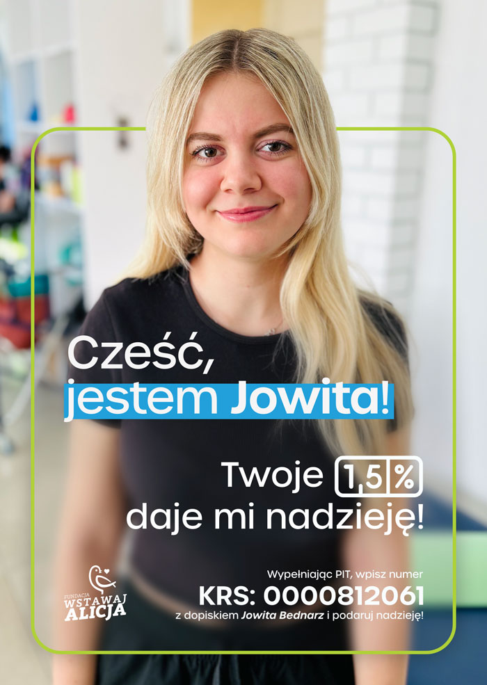 Terapia jest bardzo kosztowna, stąd można pomóc przekazując 1,5% swojego podatku. Każda wpłacona złotówka zwiększa Jowicie szansę na lepsze życie.