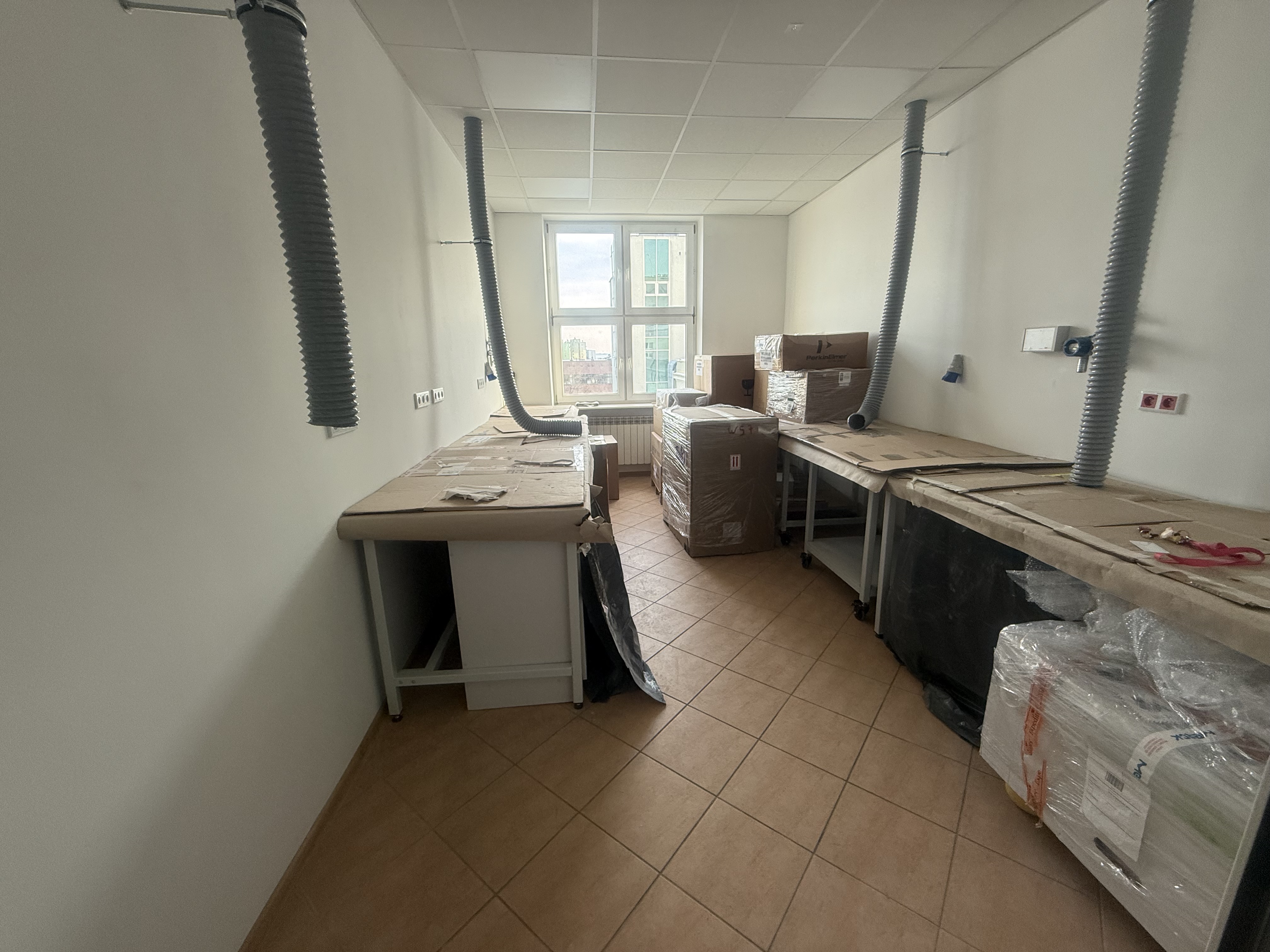 W pomieszczeniu zamontowano również meble laboratoryjne dostosowane do potrzeb zakupionej aparatury