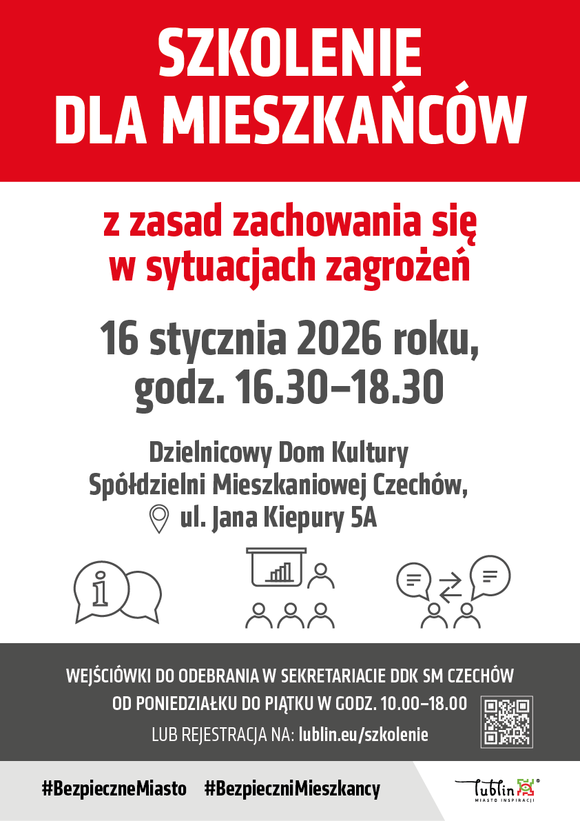 Między innymi na te pytania odpowiedzą pracownicy Wydziału Bezpieczeństwa i Zarządzania Kryzysowego Urzędu Miasta Lublin podczas najbliższego spotkania, które odbędzie się 16 stycznia (piątek) w godz. 16.30-18.30 w Dzielnicowym Domu Kultury Spółdzielni Mieszkaniowej Czechów (ul. Kiepury 5a).