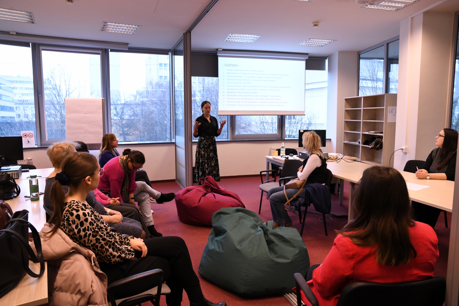 Podczas warsztatów uczestnicy mieli okazję zgłębić zagadnienia dotyczące funkcjonowania w środowisku wielokulturowym, w tym m.in. różnic kulturowych w życiu codziennym i akademickim, zjawiska szoku kulturowego oraz strategii akulturacji. Trenerka zwróciła również uwagę na konieczność świadomego odnoszenia się do odmiennych kultur przez pryzmat własnej perspektywy. Spotkania miały charakter praktyczny i dostarczyły wiedzy przydatnej w sytuacjach zawodowych i społecznych wymagających kompetencji międzykulturowych.