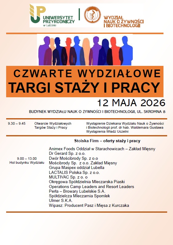12 maja 2026 r. w budynku Wydziału Nauk o Żywności i Biotechnologii odbędą się czwarte Wydziałowe Targi Staży i Pracy.