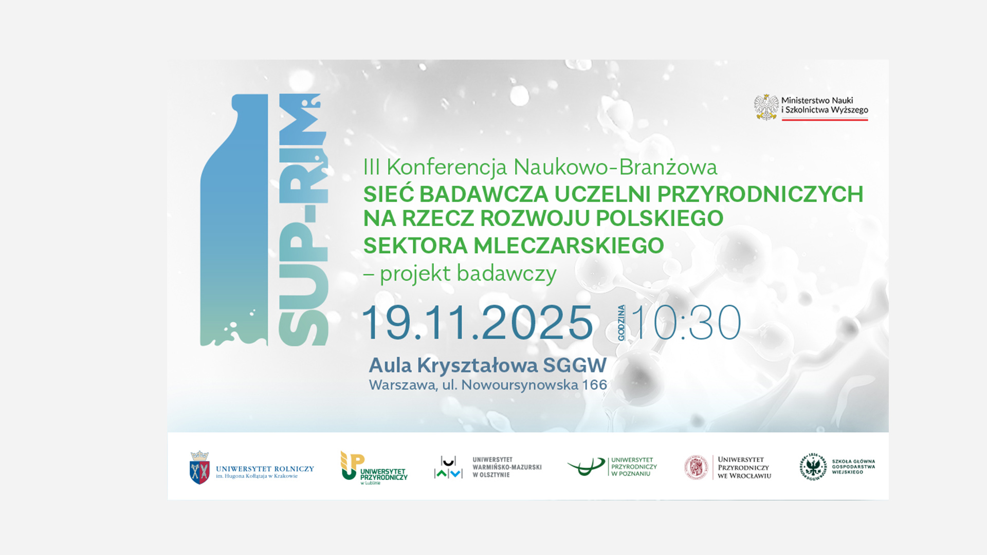 Głównym celem zadania „Sieć badawcza uczelni przyrodniczych na rzecz rozwoju polskiego sektora mleczarskiego – projekt badawczy” jest przeprowadzenie badań naukowych wspierających sektor mleczarski w zakresie innowacyjnej i bezpiecznej produkcji przy zachowaniu dobrych praktyk na rzecz ochrony środowiska w aspekcie postępujących zmian klimatycznych.