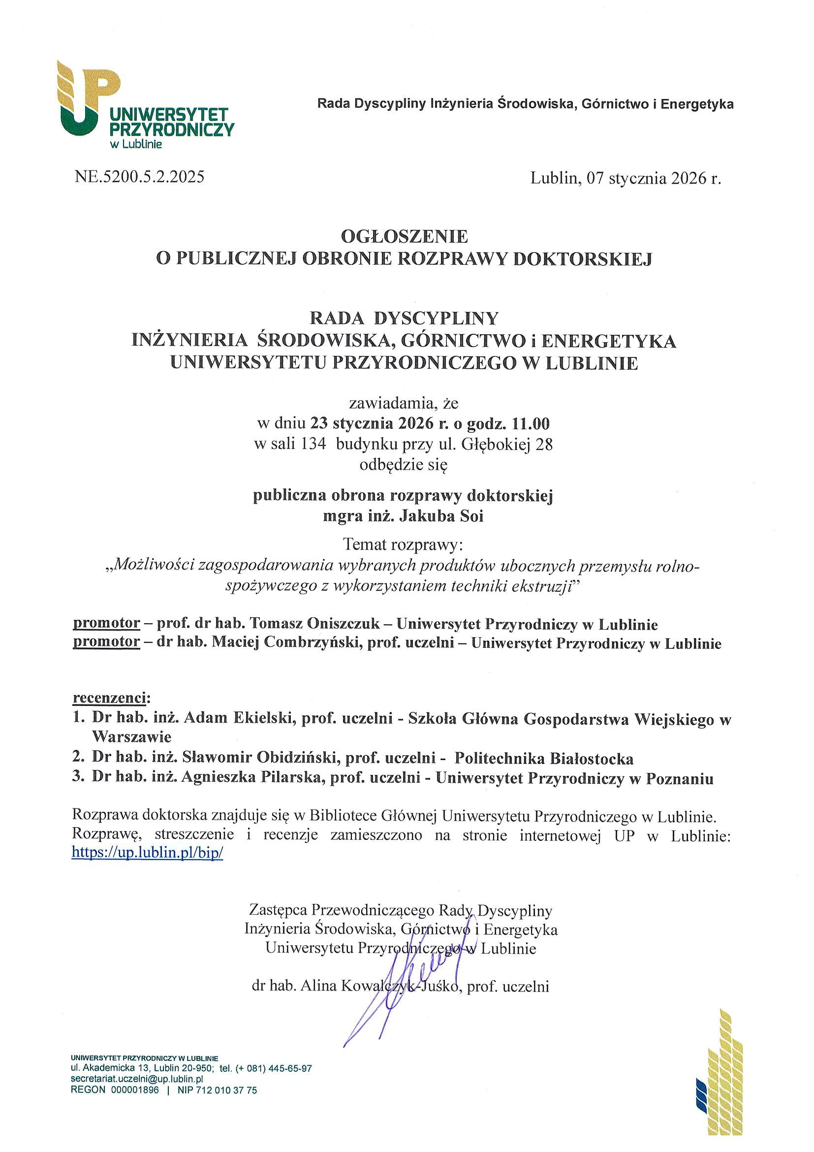 Publiczna obrona rozprawy doktorskiej mgra inż. Jakuba Soi